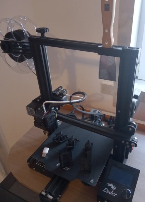 Prodaje se Creality Ender 3 Pro, 220 x 220 x 250 malo korišten. Stavljeni razni dodatci (filament guide, mini Satsana fan duct za bolje hlađenje, poklopac da sakrije pločicu zaslona, držač za špatlicu, vodilica z axis vijka i z axis kotač, fan duct za ventilator napajanja da bude tiši). Instalirana je i najnovija verzija Marlin firmwarea. Kad se namjeste postavke vrlo dobro printa zašto imamo razne vidljive uzorke koji se mogu vidjeti. Benchyi u slikama su printani s PETG filamentom.