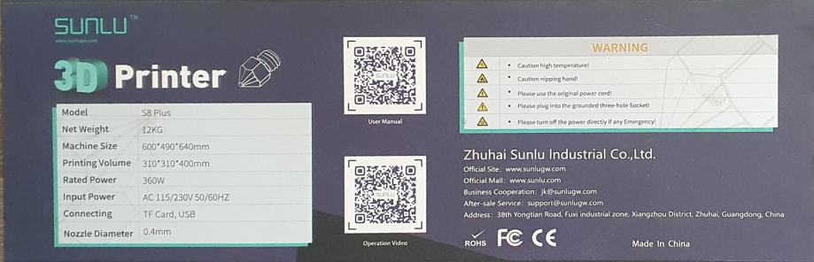 Na prodaju je 3D printer Sunlu S8+, sa područjem ispisa 300 x 300 x 400mm.