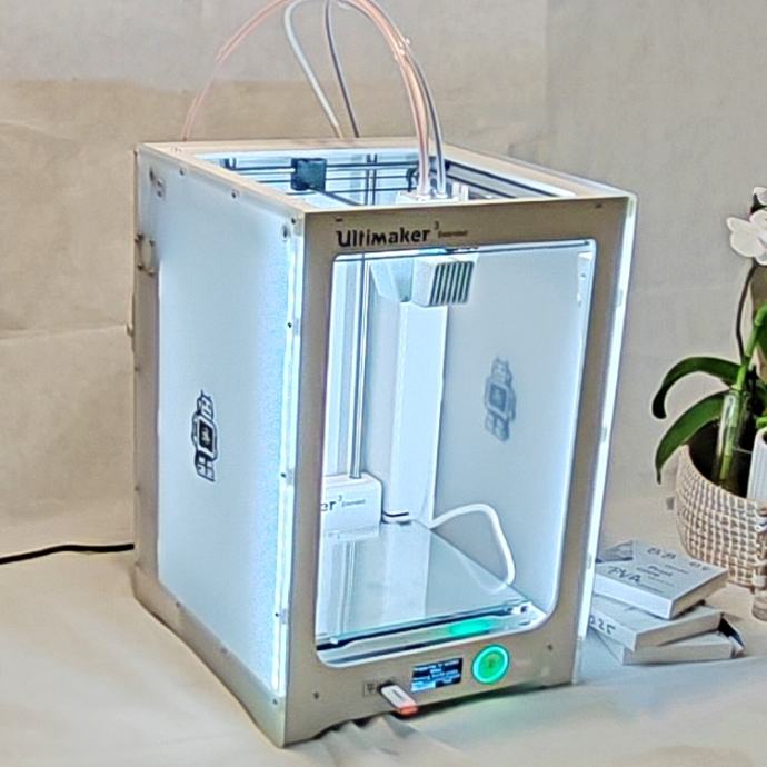 Ultimaker je jedan od vodećih svjetskih proizvođača 3D printera, a Ultimaker 3 Extended nudi gotovo industrijsku razinu ispisa uz cijenu i dimenzije pristupačne privatnim korisnicima. Ultimakerova tehnologija dvostruke ekstruzije je najpouzdanija na tržištu i omogućava ispis s dva materijala ili dvije boje. Prednost dva printcore-a je ta što je iskoristivost materijala 100%, nema dodatnih gubitaka materijala pri printanju u više boja kao kod printera koji dolaze s jednom mlaznicom. Što je najvažnije, izuzetno laka izmjena mlaznica.