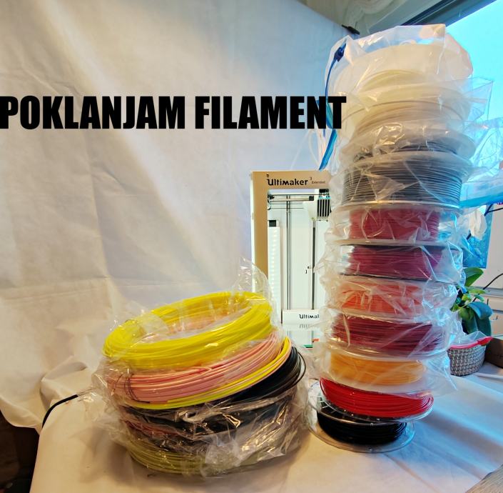Dodatno uz printer poklanjam hrpu (vidi sliku) filamenta (Ultimaker filament, Colorfabb, Filamentum i Faberdashery).