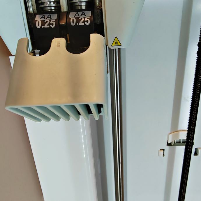 Printer ima dva kompleta AA printcore-a: 0.4 mm i 0.25 mm (0.25 mm omogućuje izuzetno detaljan ispis vidi sliku, cijena novih 0.25 mlaznica je oko 200 € ), te BB 0.4 mm mlaznicu za ispis support-a topivog u vodi
