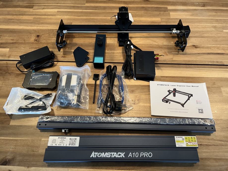 10 mjeseci rijetko korištena ATOMSTACK A10 PRO laserska gravirka 50W .Laser stvarna izlazna snaga 10W Output .Neovisna o PC jer ima vlastiti ekran .WIFI konekcija .Manje ogrebotine i sitni znakovi korištenja.Reže šper do 2 cm i crni plexy do 1.5cm . Radi sa LaserGRBL ili LightBurn .
