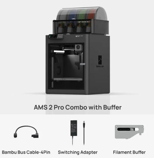 Uz printer je dodan AMS2 Pro koji ima značajno unaprijeđeno baratenje filamentima, sušenje i održavanje u niskoj vlazi.