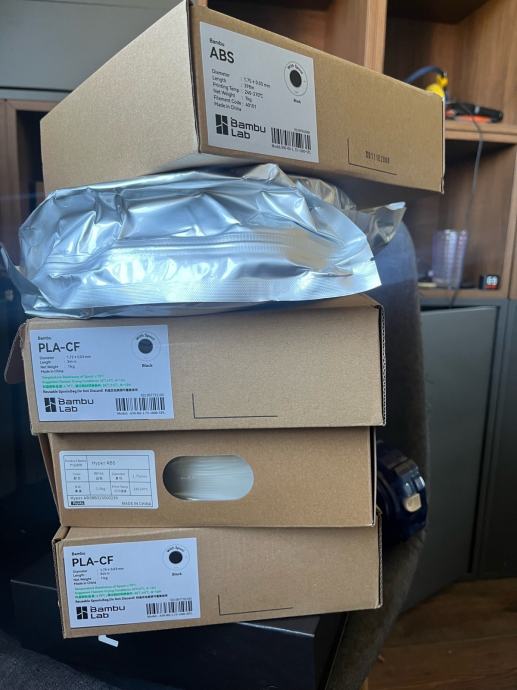 Prodajem 3x PLA-CF, 2x abs (black & white) od bambulaba. Sve zajedno.