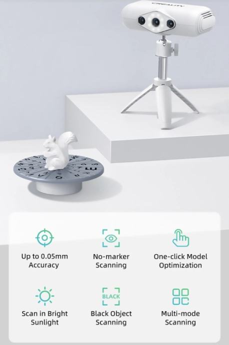Prodajem Creality Lizard 3D scanner do 0.05mm preciznosti, luxury verzija sa dodatnim stalkom i opremom za fotoaparate i smartphone za uzimanje tekstura. Dolazi sa rotacijskom pločom(turn table mode) za modele, a može se koristiti ručno. Za ručni mode dodatno dolazi isprintan držač. Uređaj je ispravan kao i pripadajuća oprema. Više detalja o scanneru može naći na linkovima i videu.
