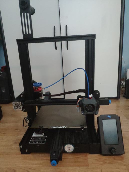Dodan je Trianglelab 3D BLTouch za automatski BED level, jače opruge za bed, stavljen je metalni extruder, bowden tube, novi hotend, all metal heat break, SUNON ventilator za hotend te je stavljen Ender 7 style hotend sa 2 ventilatora za part cooling. Printer ima PEI podlogu te staklenu koju dajem uz njega.