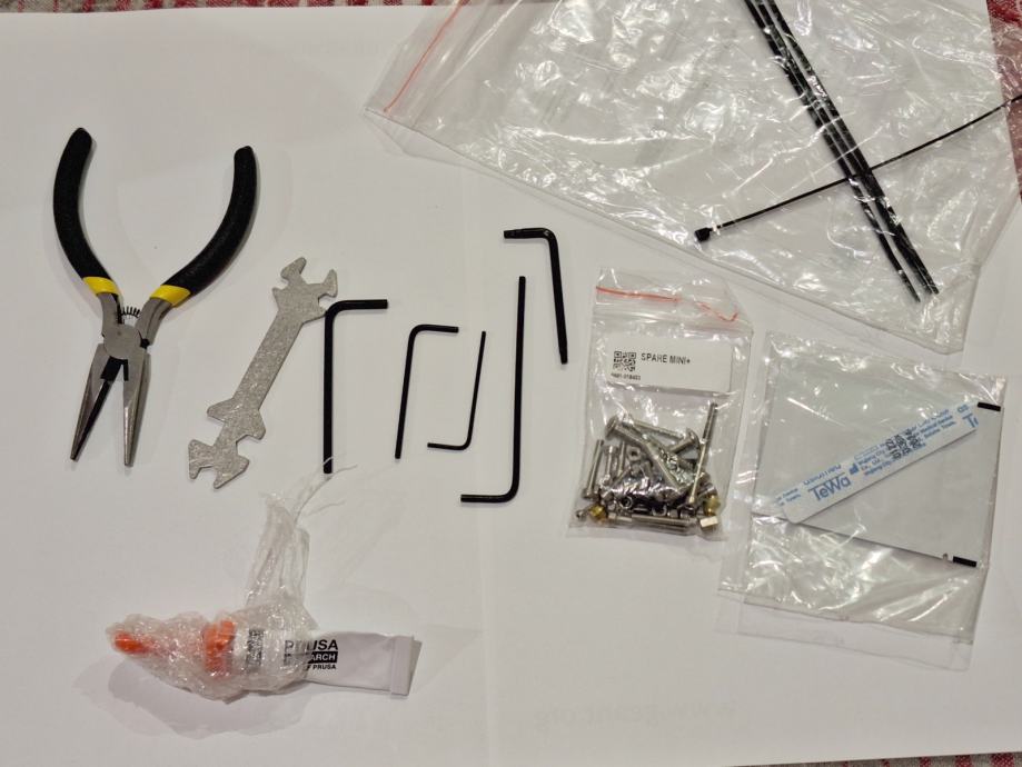 Printer je u glavnom korišten u zatvorenom kučištu (IKEA LACK for Original Prusa Mini+) na betonskom opločniku s gumenom podlogom, u ispravnom je i kalibriranom stanju, koršten je za printanje prototipa i radnih verzija u prošlih 11 mjeseci. Manja oštečenja su na jednoj strani Textured Sheet podloge nastala "početnon nestrpljivošću", koja ne utjeće na funkcionalnost podloge