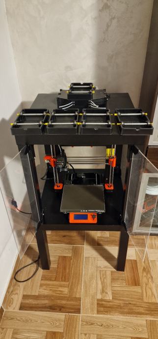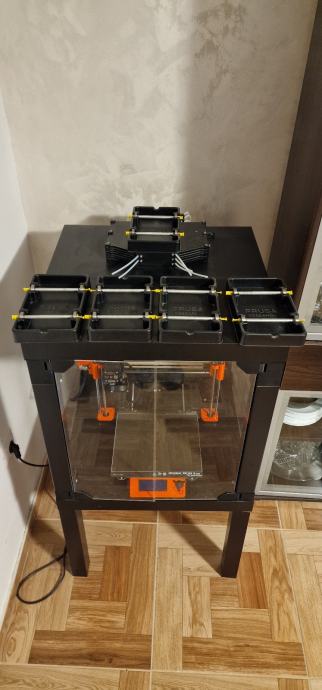 Prodajem 3d printer Prusa i3 MK3S+ sa MMU2S i enclouserom.Printer nema nikakvih oštećenja niti ogrebotina,printer je kao novi i potpuno funkcionalan,sačuvane kutije s dijelovima koji su viška ili zamjenski,također i sva uputstva sačuvana.Moguća zamjena za filamente.