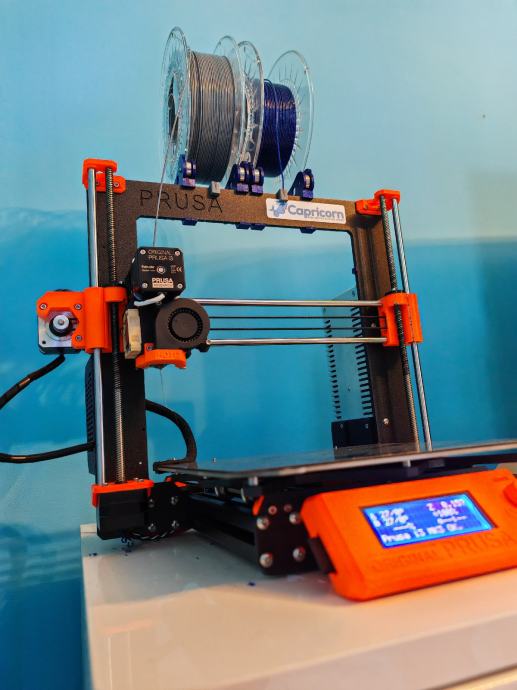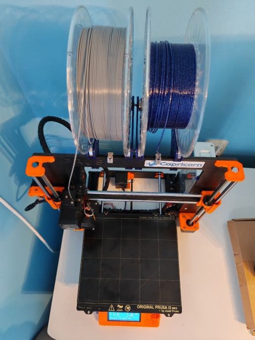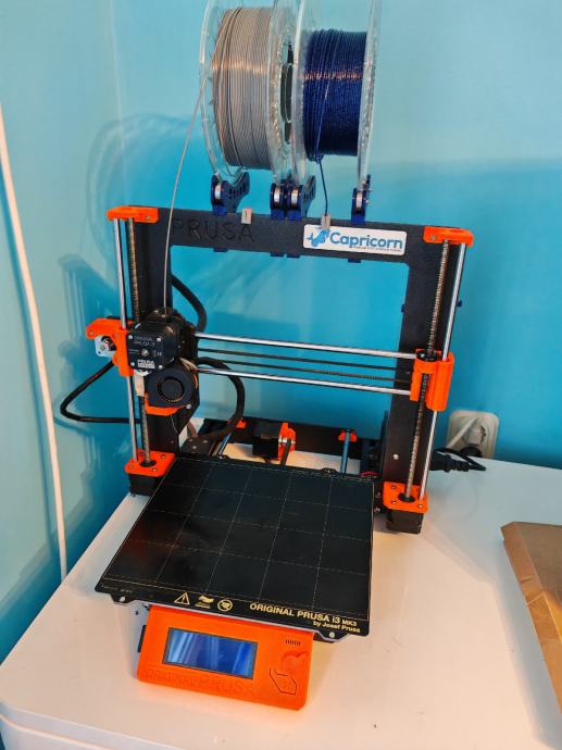 Uz printer ide i prusa PLA filament i trenutni sivi devil design PETG filament za prvu ruku isprobavanja za printanje i jos memory card.