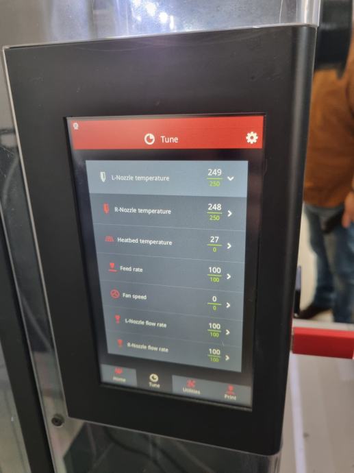 Uglavnom printan ABS/ASA na primarnoj glavi. Printan nešto sitno PETG i PC.