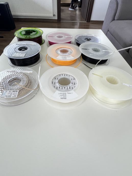 Dolazi s više spoolova materijala, neki od njih imaju NFC čip za automatsko očitanje i kalibraciju. Dolazi s svim popratnim dodacima - dodatnom glavom, alatom, mazilom, itd.