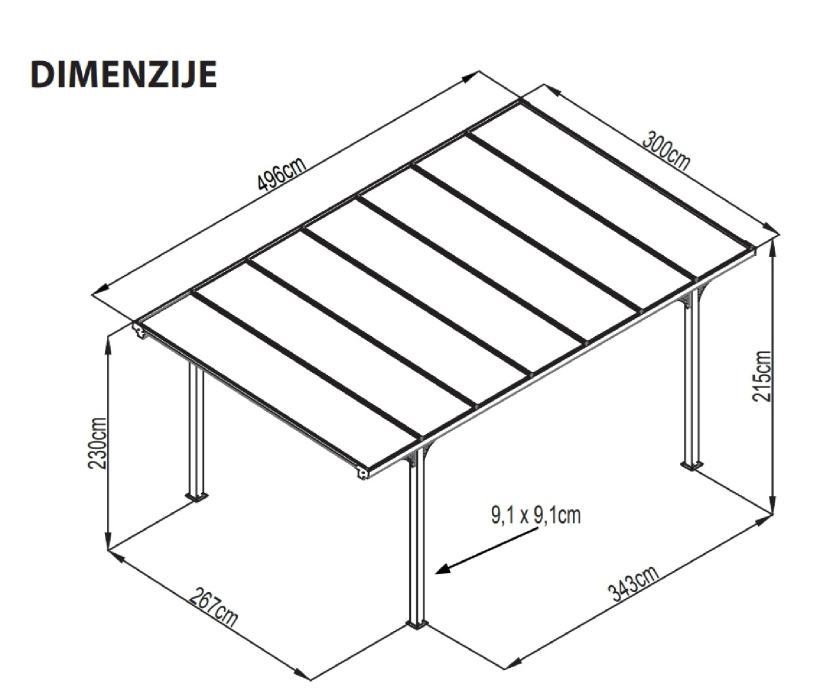 Prodajem alu nadstrešnicu za auto, dimenzije 496x300 cm. Nema mogučnosti druge dimenzije.