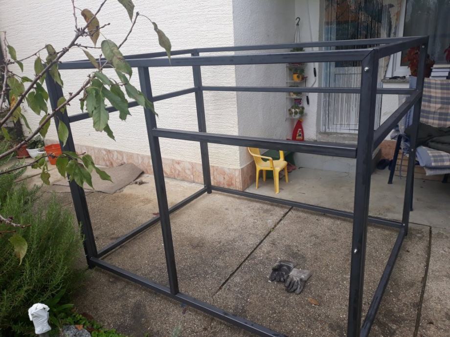 Metalna konst.Dimenzije po dogovoru.Podnice od dasaka 20mm.Krov izrađen od trapeznog lima.Lakiran u boju po želji kupca.