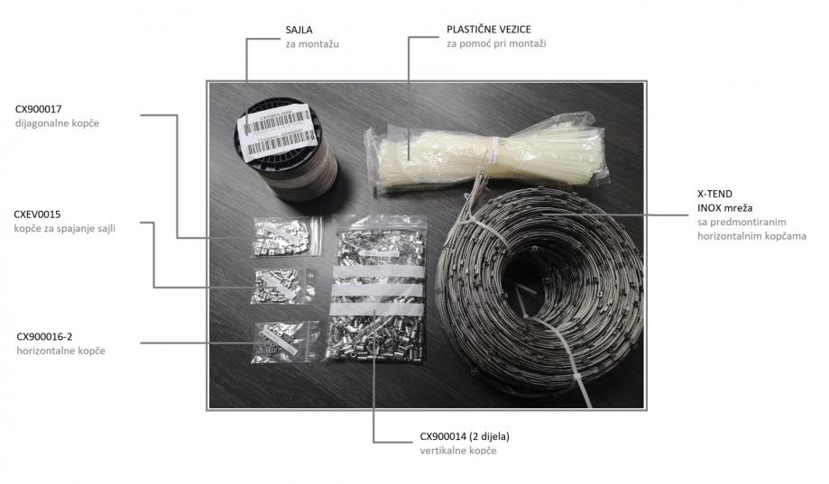 - Tip CXS, veličina oka MW60, debljina sajle 1,5mm, boja INOX, visina mreže 960mm, bilo koja mjera u dužinu s tim da je jedna rola dugačka do 150m
