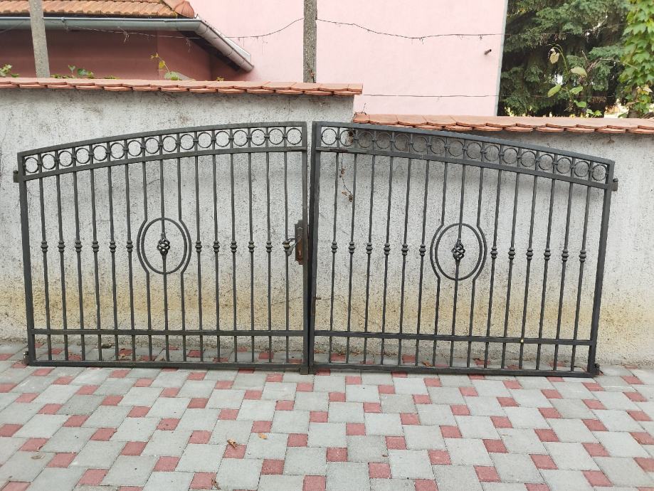 Prodajem kovanu ogradu. Kolni ulaz 3,8 m, ulaz za pješake 1 m i dva fiksna komada po 2,5 m koji nisu na slikama, u garaži su. Slike mogu poslati naknadno. Ukupno 9,8 m ograde. Visina je 1,5 m
