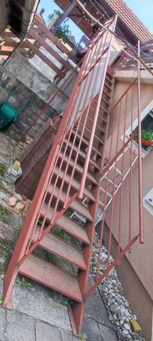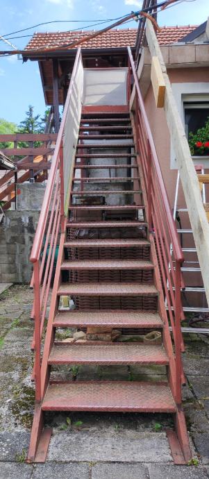 Visina 330cm, širina ukupno 90cm, 17 gazišta plus podest veličine 90/90cm, gazišta su visine 18cm sa 30cm dubine. Dužina cijelog stepeništa 600cm.