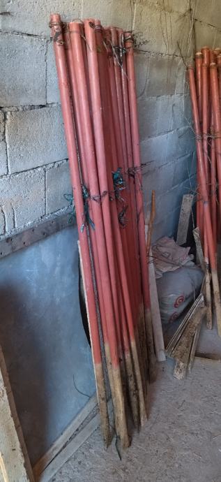 Rabljeni metalni stupovi za vinograd ili ogradu, promjer 30 i 40mm. Ispunjeni betonom, obojeni u temeljnu boju, visine cca 180 cm. I aluminijska sidra/natezači. 5€/komad.