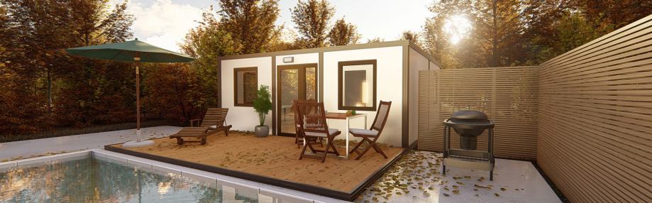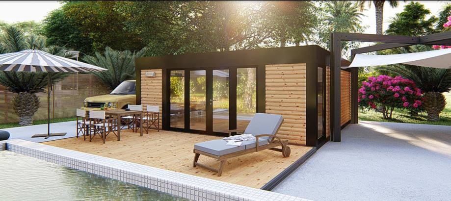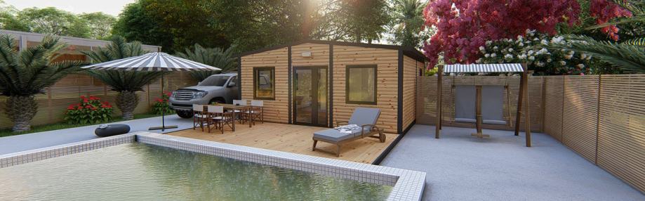 MODEL RAVNI KROV SA DRVETOM IZVANA (2 + 2 osoba )