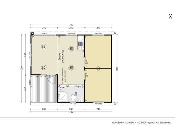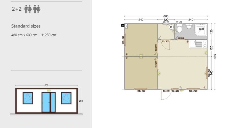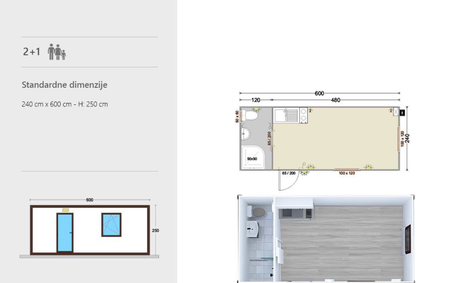 Dimenzije - 480 x 600x 250cm = 28,8m2 - 2 spavaće sobe