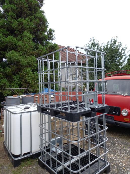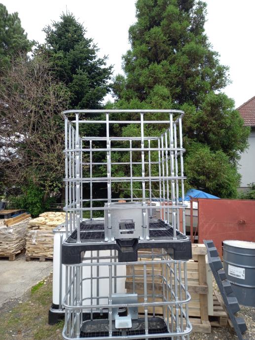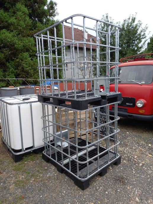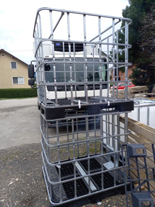 Okvir od ibc kontenjera, aluminijski okvir na plasticnoj paleti.Dimenzije 100×120 cm.
