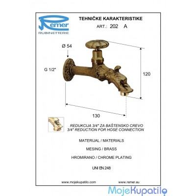 Vrtna, mesingana, ukrasna 202A Remer slavina s priključkom 1/2",