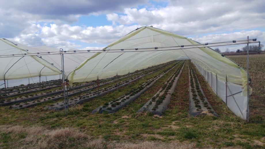 Na prodaju plastenici za jagode, pocinčana metalna konstrukcija, širine 5 m, dužine 100 m, 6 kom, ukupne površine 3000 m2. Lukovi su promjera 1/2 cola i montiraju se na cijevi promjera 3/4 cola koje se ubušuju u zemlju svaka 2 m. Konstrukcija se sastoji od 336 lukova i 392 stupova. Čeoni podupiraći gratis.
