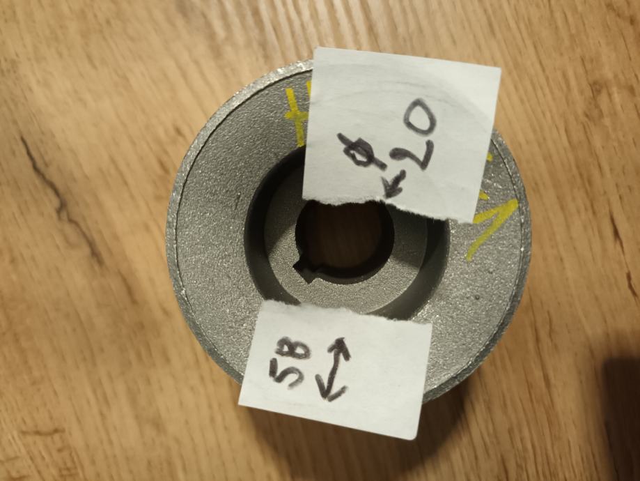 Prodajem novu aluminijsku dvorednu remenicu vanjskog promjera 58mm te unutarnjeg 20mm za remen 13mm.