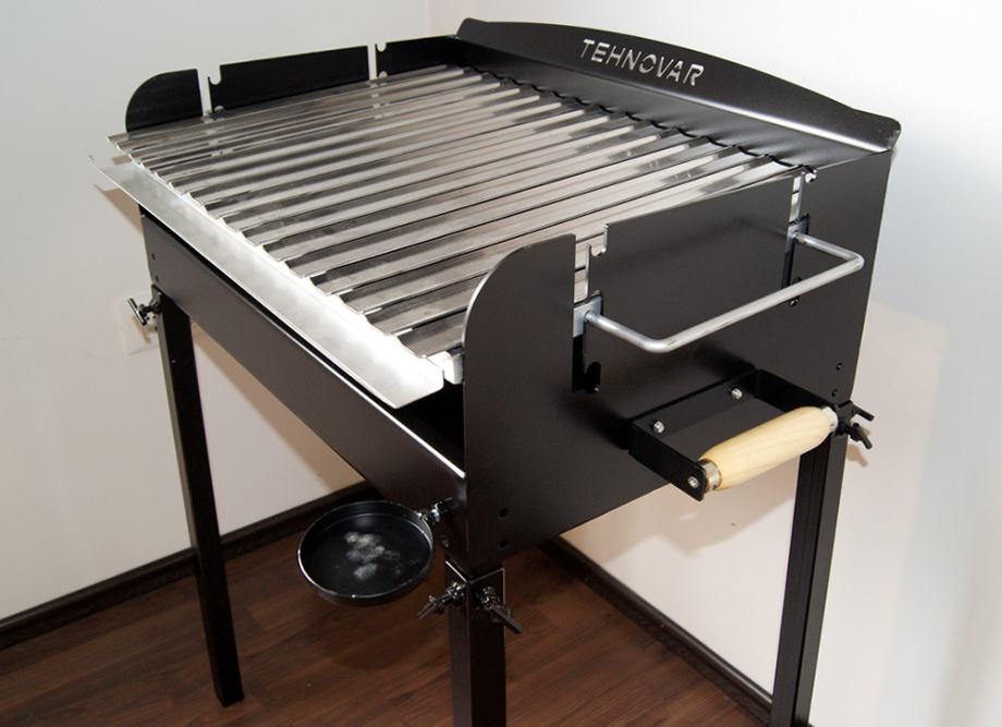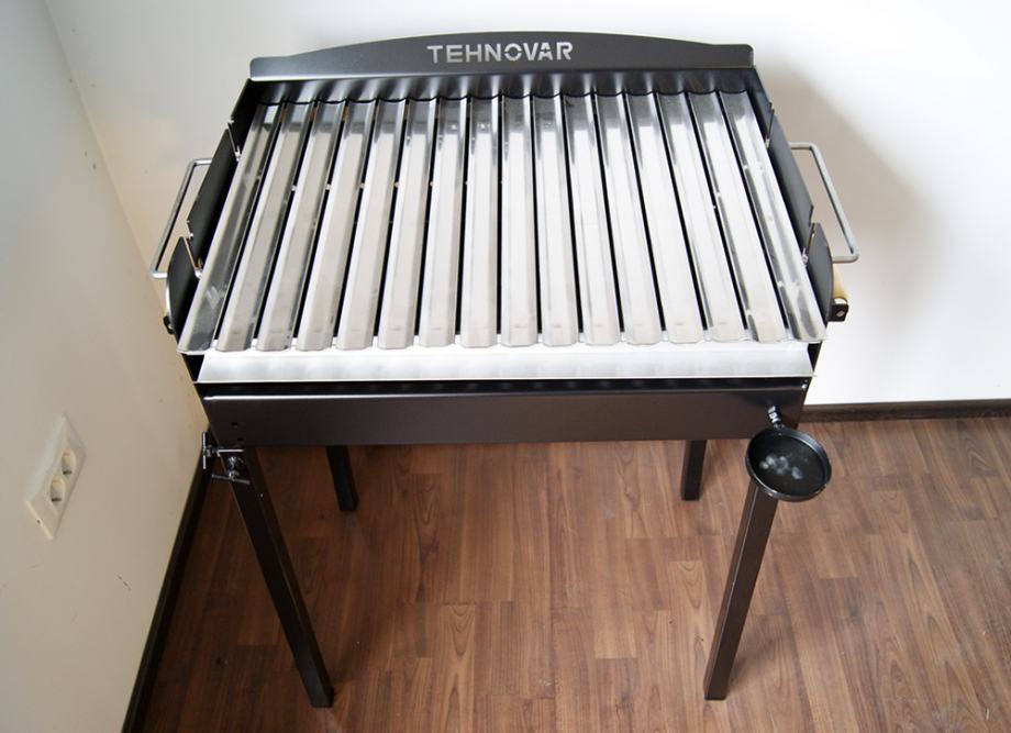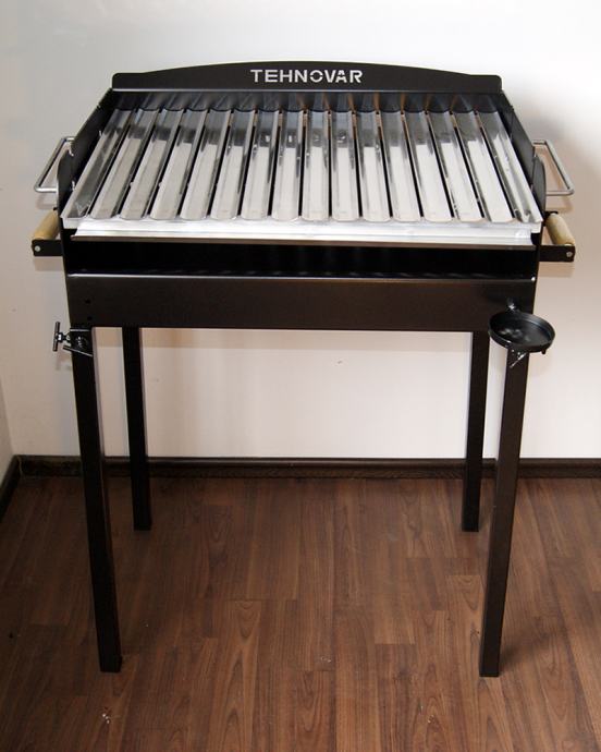 Standardni model rešetke roštilja sa INOX prečkama debljine 2 mm - sa okvirom debljine 5 mm i željeznim ručkama 8 mm sa vanjske strane. Ručke su multifunkcionalne i služe za pomicanje visine pečenja i za transport kompletnog roštilja.