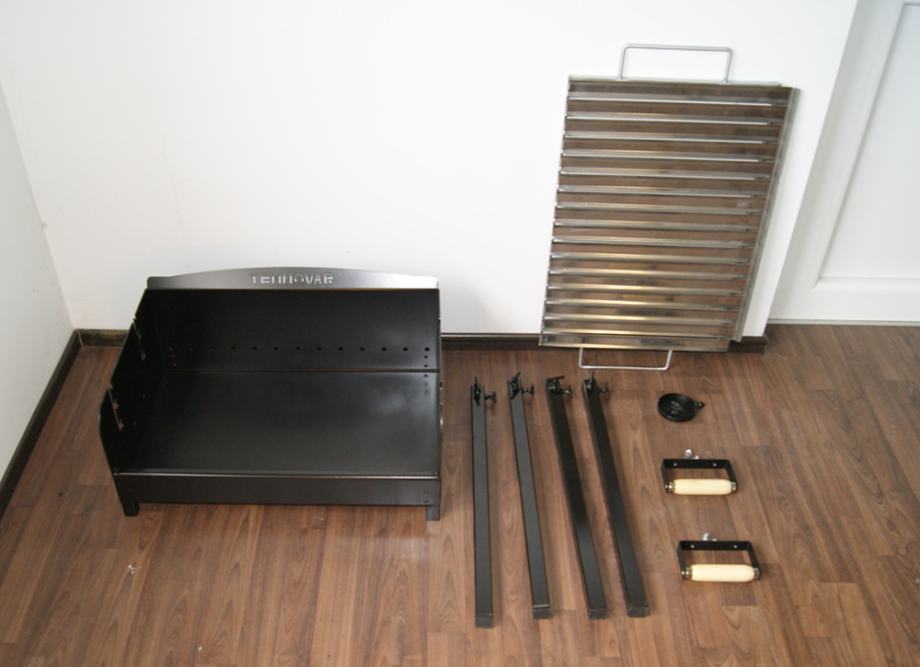 Kod ovog modela, 4 noge su duljine 60 cm rasklopive vijcima što je vrlo pogodno za skladištenje. Visina ložišta je fiksna. Gornja visina za loženje je 78 cm!