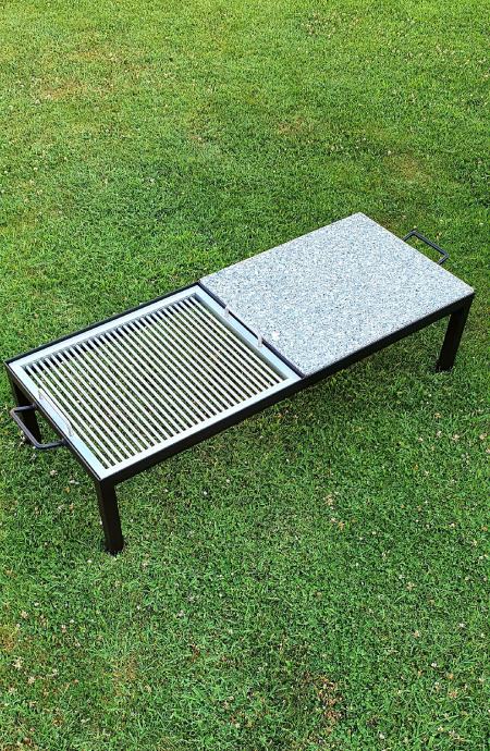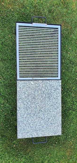 U kombinaciji sa inox rešetkom za pečenje dimenzija ; 50 × 40 cm , okvir cijev 20 × 20 × 2mm , šipka debljine fi 8mm