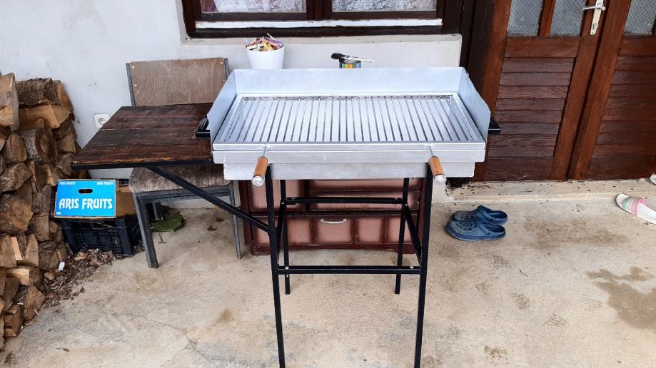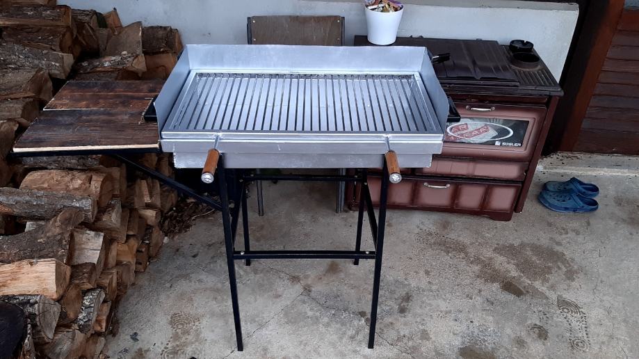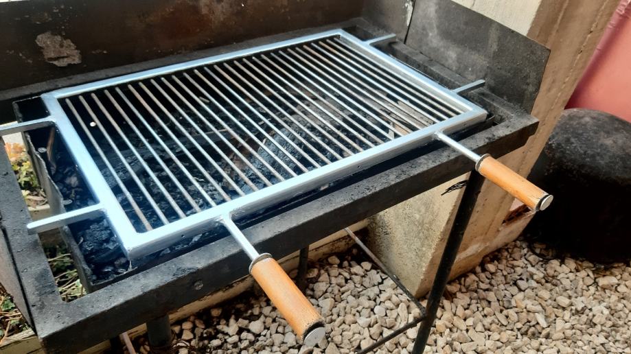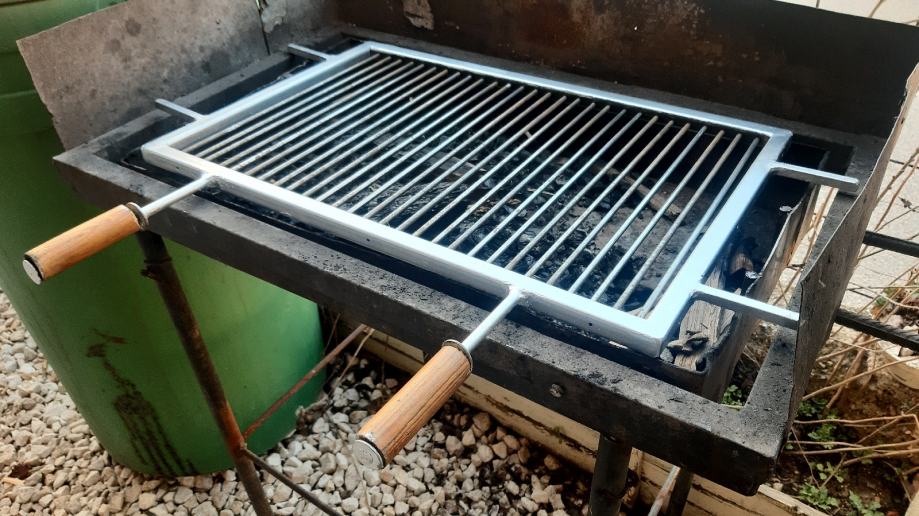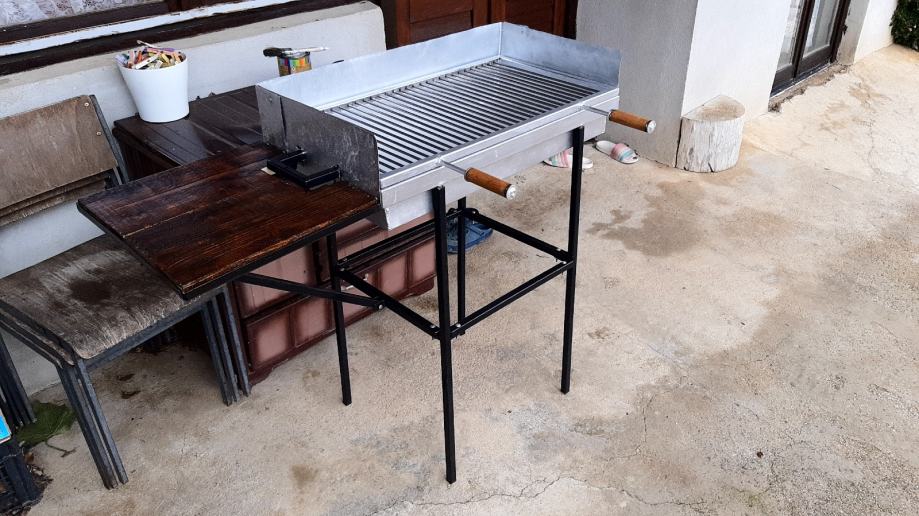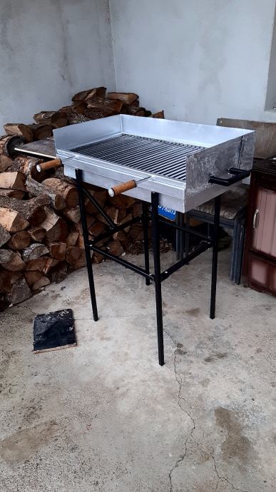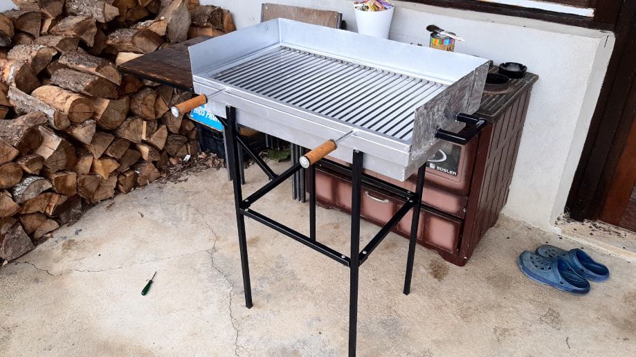 Prodajem roštilj na drva i ugljen. Ložište od lima 2 mm koje ne može izgoriti od vatre. Dubina ložišta 10cm. Rešetka za pečenje od metala i šipke fi 6 mm. Rešetka dimenzije 75x40 cm. Na rešetku stane 3kg mesa. Žica je svjetlo vučena za roštilje, i slobodna u svom ležištu da se ne bi savila od vrućine. ROŠTILJ je na visinu čovjeka i rastavljiv tako da bez problema stane u automobil. Pogodan za prirodu oko kuće terase itd. Može na kotačiće ili bez njih, također i stolić sa strane za tanjur, lonac i druge stvari. Može poziv ili sms na whats app i viber br 095 846 8959. Naglašavam ručni rad i kvalitetan, dugoročan, neslomljiv, nesavitljiv garantiram bolji nego iz trgovačkih lanaca.