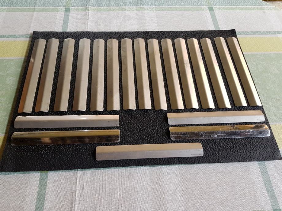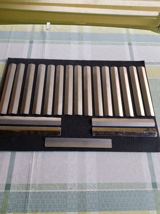 Prečkice..žljebovi ..za sastavljanje rešetke za roštilj...dimenzije 23x3 cm debljina 2 mm...20 komada...stanje vidljivo na slikama...potrebno posloziti i povariti na okvir roštilja...saljem hp postom...