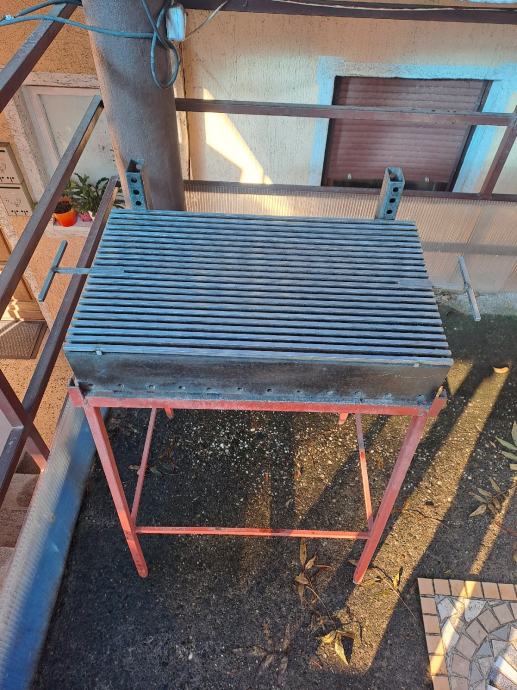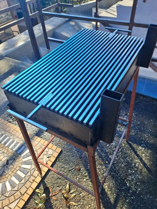Povoljno prodajem ručno izrađeni roštilj. Dimenzija rešetke je 60x35 cm. Visina stalka 90 cm. Korišten svega nekoliko puta. Noge na stalku su podesive. Također podesiva (4 pozicije) je visina rešetke postavke visine za rešetku.