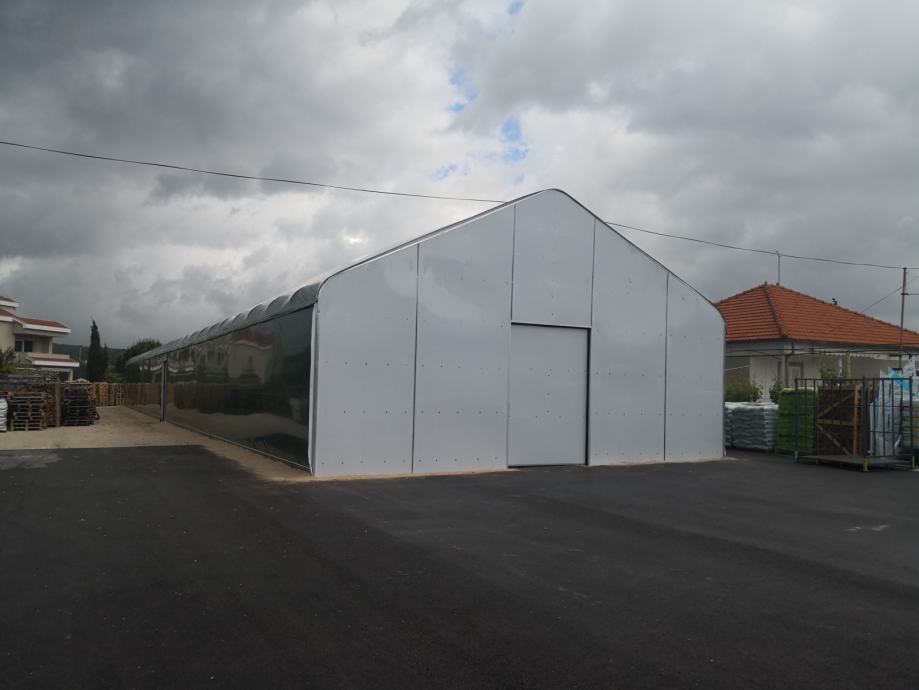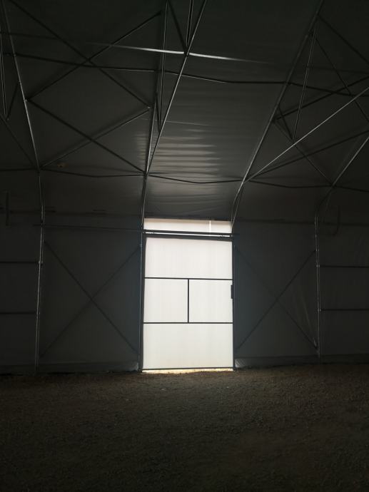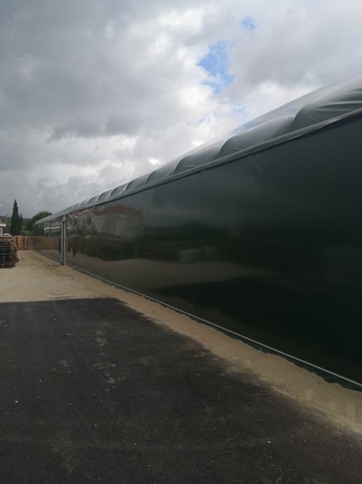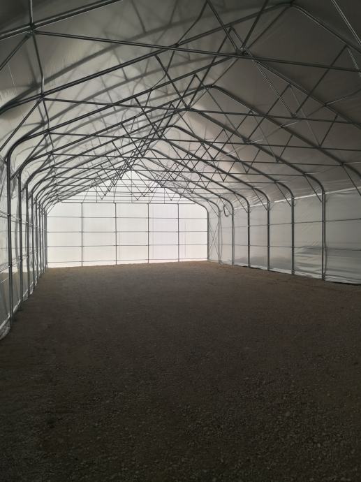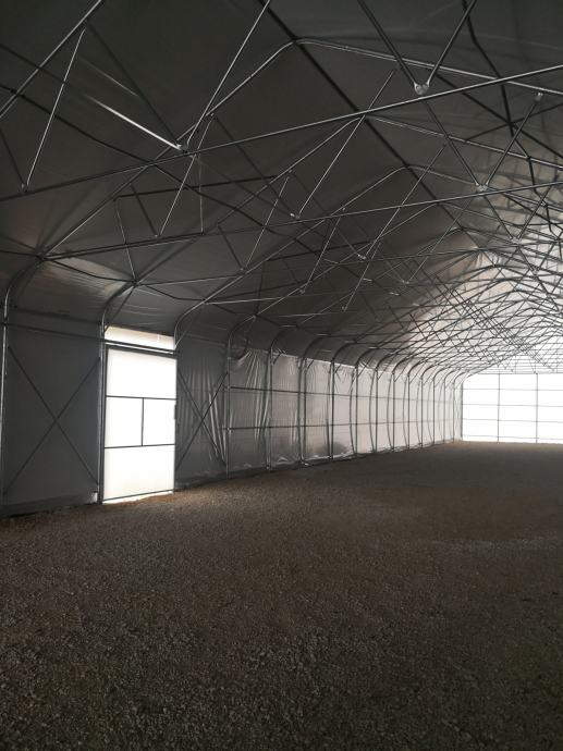 Konstrukcija je izrađena od pocinčanih cijevi fi 60 i fi 32...kao pokrov se koristi dvoslojna folija za skladišta debljine 250 mikrona