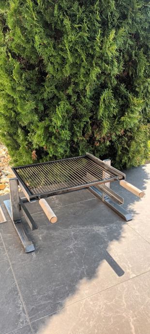 Čvrst i stabilan stalak za gradele (rešetku) za roštiljanje koji se može prilagoditi svakoj dimenziji rešetke,ima vise nivoa pečenja .Stalak se vrlo jednostavno može raširiti ili skupiti tako da odgovara i većim i manjim rešetkama.Može se koristiti u zidanim pečenjarama ili na otvorenom prostoru.Mogućnost slanja poštom ili osobno preuzimanje.tel 0915373198