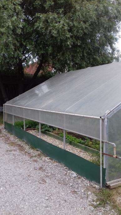 ČELIČNA KONSTRUKCIJA.Dimenzije 6m×4.5m,jedna vrata i bočno provjetravanje,pogodan za područja di zimi ima puno snijega zato jer se zbog sistema piganja snijeg ne zadržava na foliji.Izdržljiv i čvrst.NOVI isti kao i na slici. Lagana montaža. NIKAD MONTIRAN-NOVI