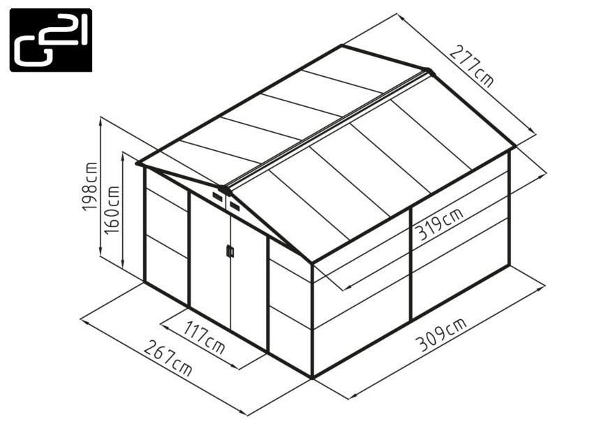 Vrtna metalna kućica za alat - šupa 8,25 m2 - 2,7m x 3,1m - ZELENA