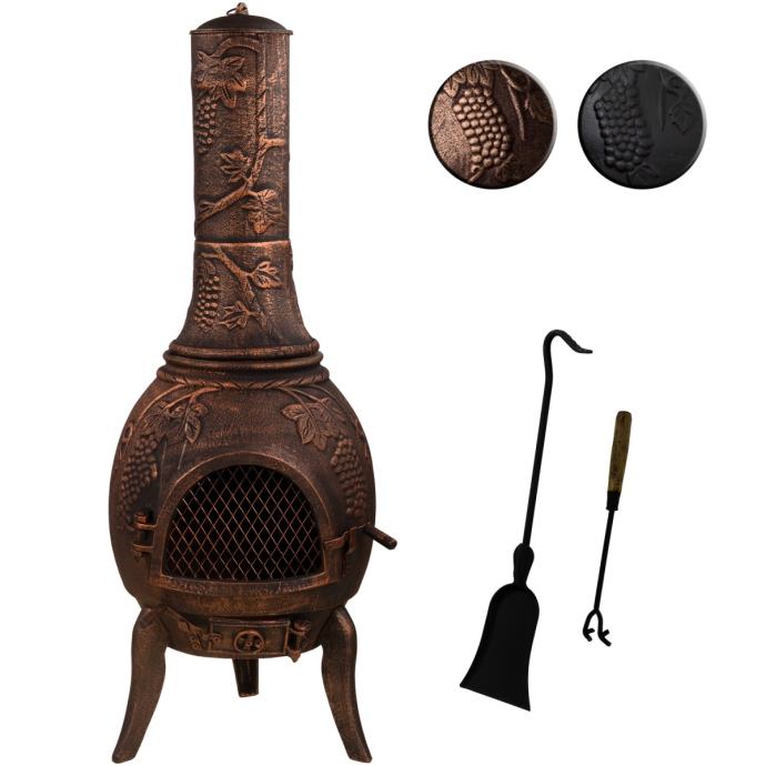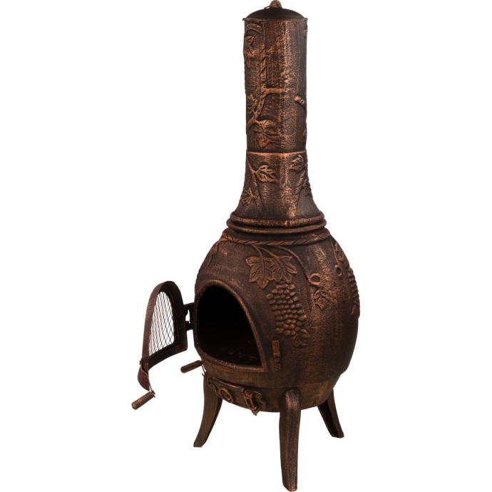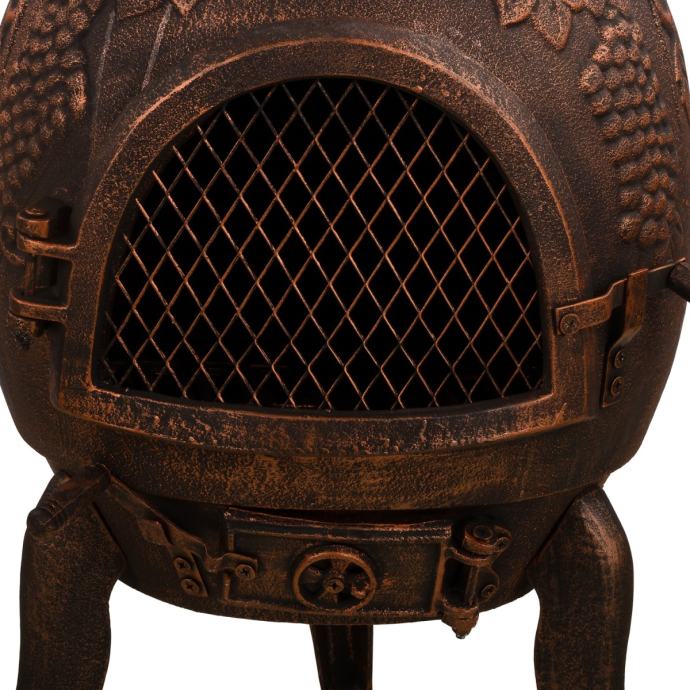 XXL vrtni kamin s velikom komorom za izgaranje i ukrasima na tijelu kamina.