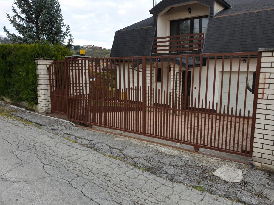 POVOLJNO PRODAJEM METALNA KLIZNA VRATA (DIM 4500 * 1730) SA KOTAČIMA, ZUBNOM LETVOM ZA EL. MOTOR TE DONJOM VODILICOM I ULAZNA VRATA (DIM 1150 *1600) .
