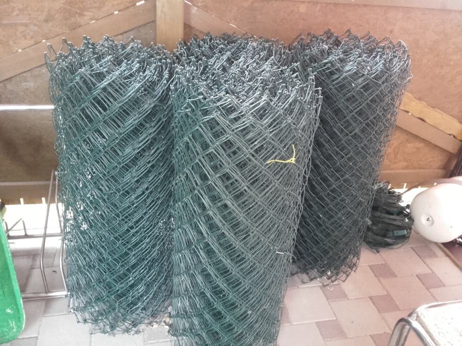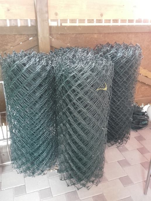 Pletena zelena žica za ogradu plastificirana i pocinčana Visine 1m ,dužine 90 metara (.2x25m i 2x20m ).sa tri reda žice za špananje sa španerima . 800 kn .