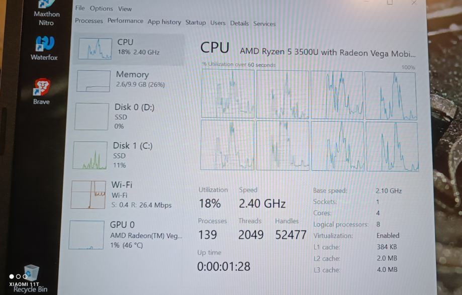 Laptop originalno ima konfigurciju 14 FHD IPS zaslon ,proc AMD Ryzen 5 3500U, 8GB RAM, 512GB PCIe NVMe SSD, AMD Radeon Vega 8 grafika (2gb)