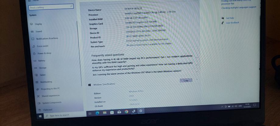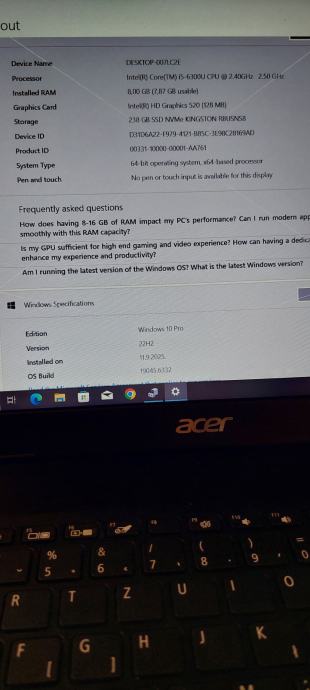 ✔️ CPU: Intel Core i5 6300u 2,4 2,5 Ghz