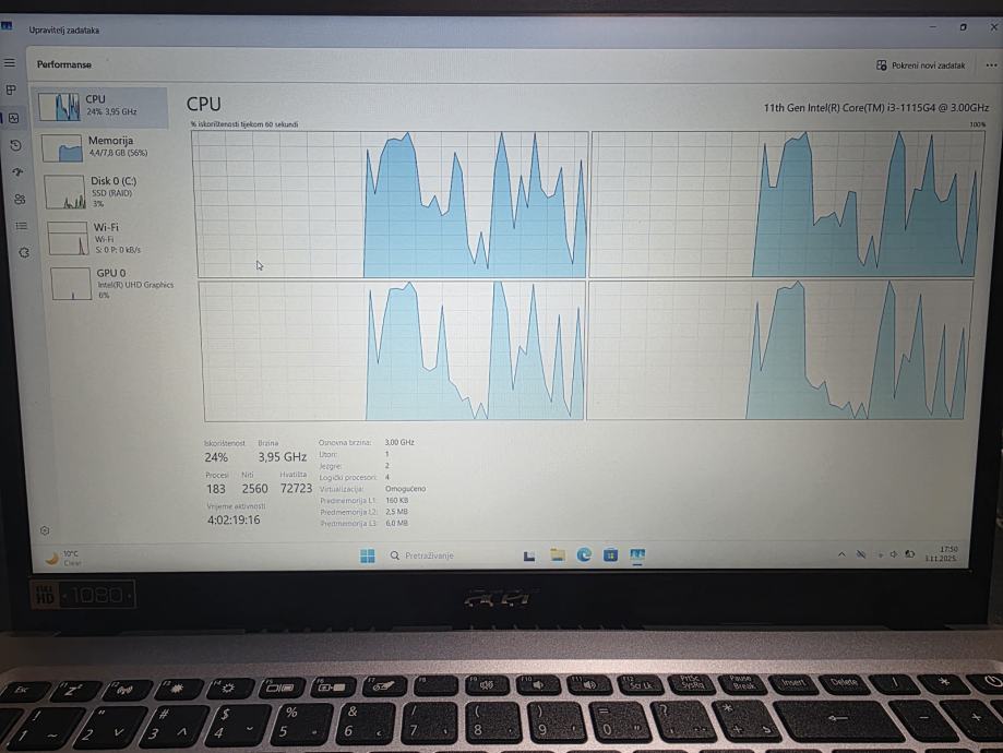 CPU: Intel I3 1115G4 (2 jezgre, 4 threda)