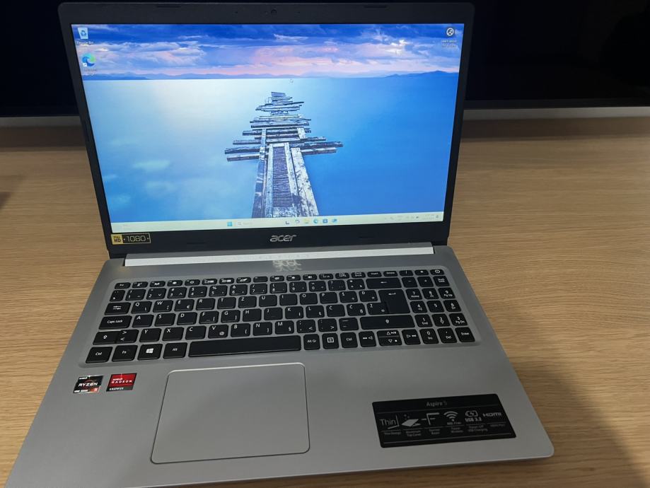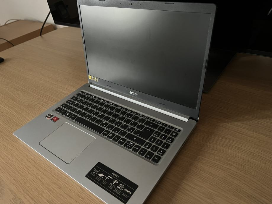 Prodajem laptop računalo Acer Aspire 5. Laptop ima kućište srebrne boje, vrlo dobro očuvan, pogotovo iznutra. Pokreće ga AMD Ryzen 5 4500U procesor sa integriranom AMD grafikom. Za pohranu koristi WD NVMe SSD kapaciteta 512 GB. Ima 16 GB radne memorije (nadograđeno sa 8). Laptop ima tri USB-A porta, jedan USB-C port, HDMI 2.0, Ethernet i audio port. Ekran ima 1080p Full HD rezoluciju, dijagonale 15.6 inča. Laptop dolazi sa aktiviranom verzijom Windows 11 Home operativnog sustava.
