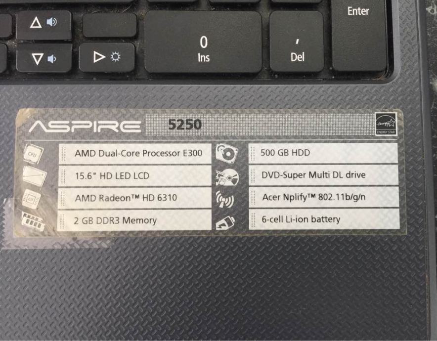 ACER Aspire 5250, AMD Dual-core Processor E30, 15,6" HD LED LCD, AMD Radeon HD 6310, 4 GB DDR3 Memory, 500 GB HDD prodajem. Instalirani WINDOWS 7 kupljeni s laptopom i OFFICE 2007.