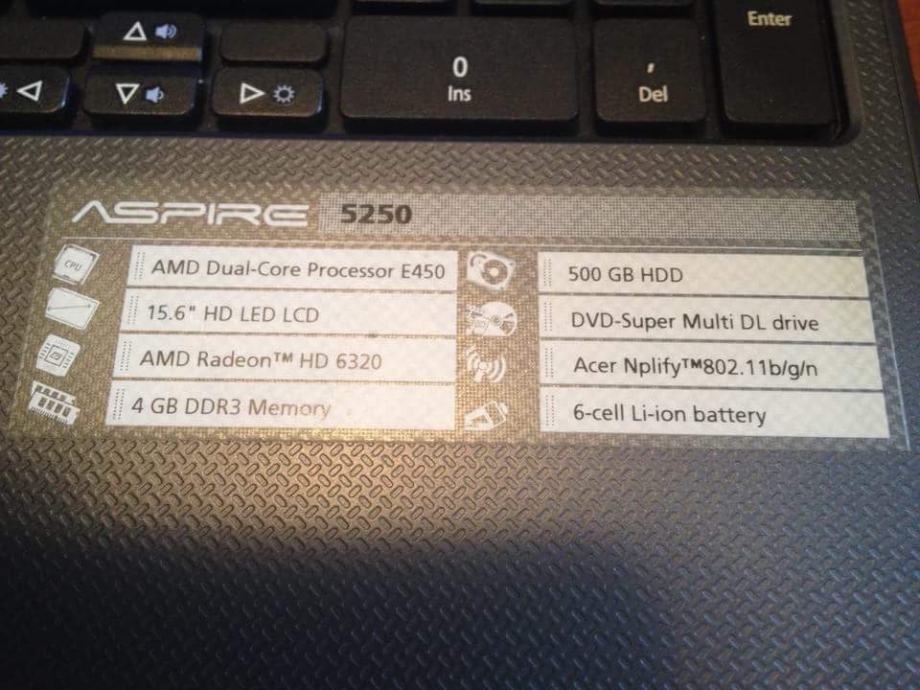 Acer Aspire 5250, u originalnoj ambalaži, uputstvima i driverima, očuvan.