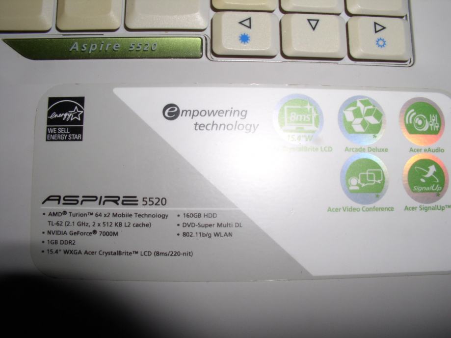 Acer Aspire 5520 Model ICW50 licenca Windows Vista Instaliran Windows 7 Ultimate