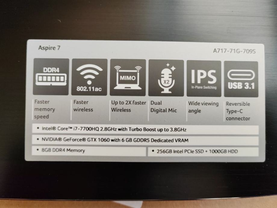 Intel Core i7 7700HQ, 2,80 GHz with Turbo Boost up to 3.8GHz