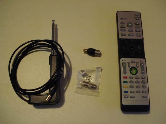 - digitalni TV tuner - TV Aver A310 (daljinski, antena, konektori)
