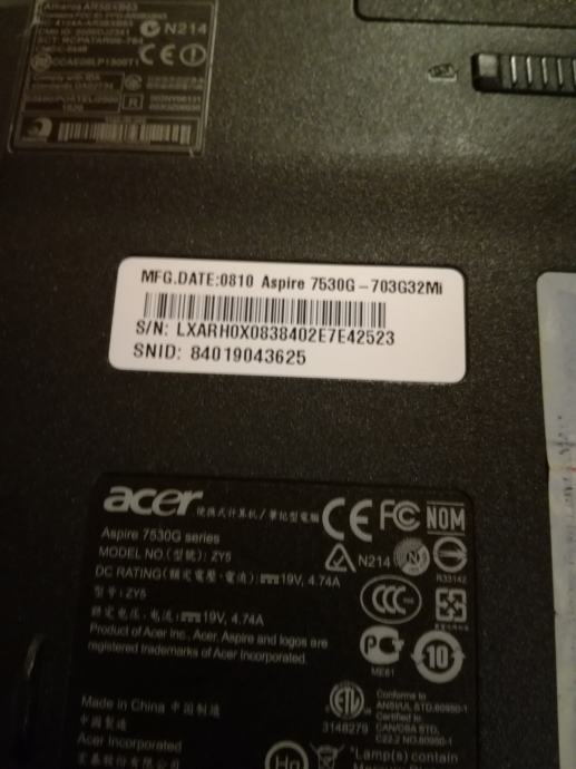 Prodajem Acer Aspire 7530g AMD Turion x2 Dual Core Mobile RM-70 2.00 GHz.